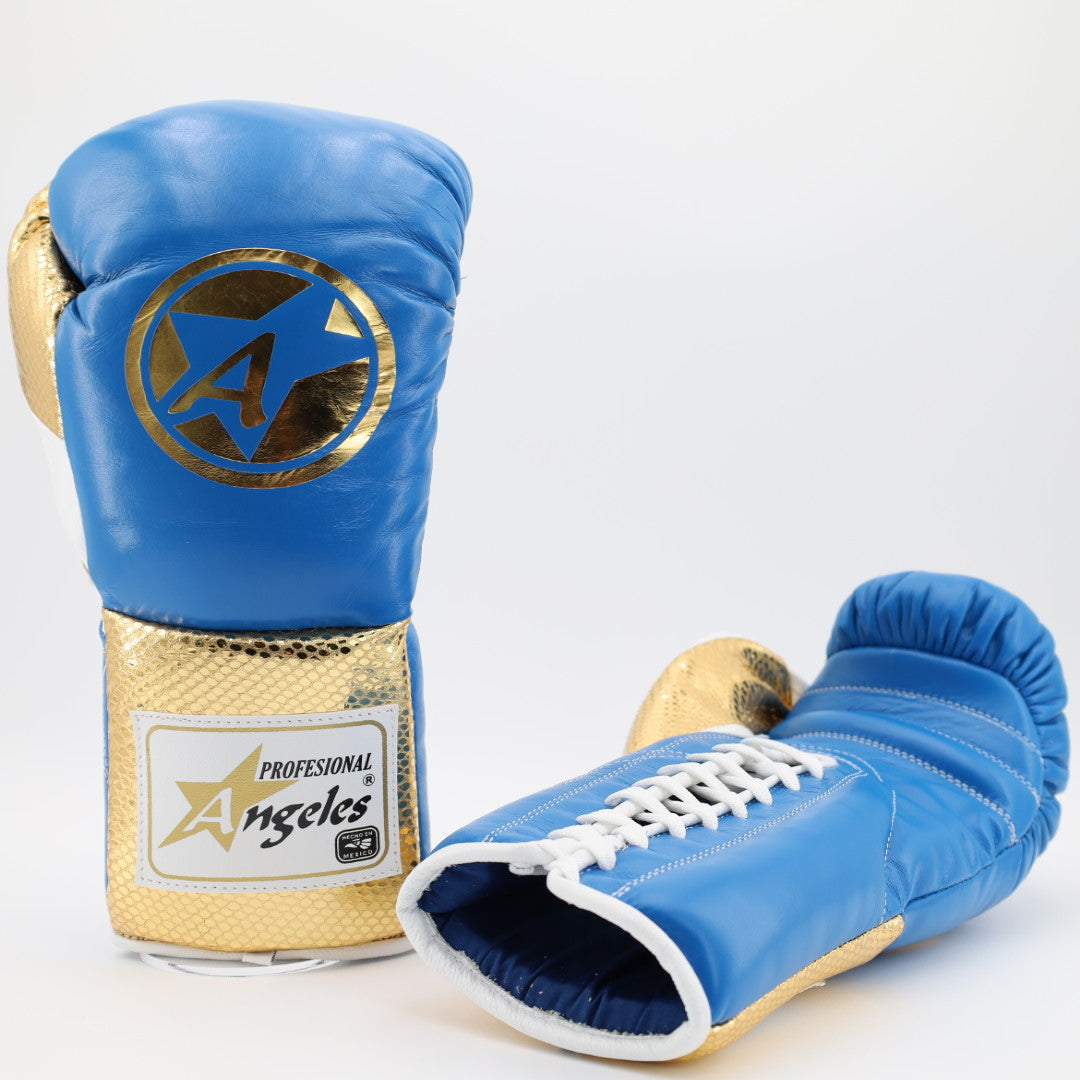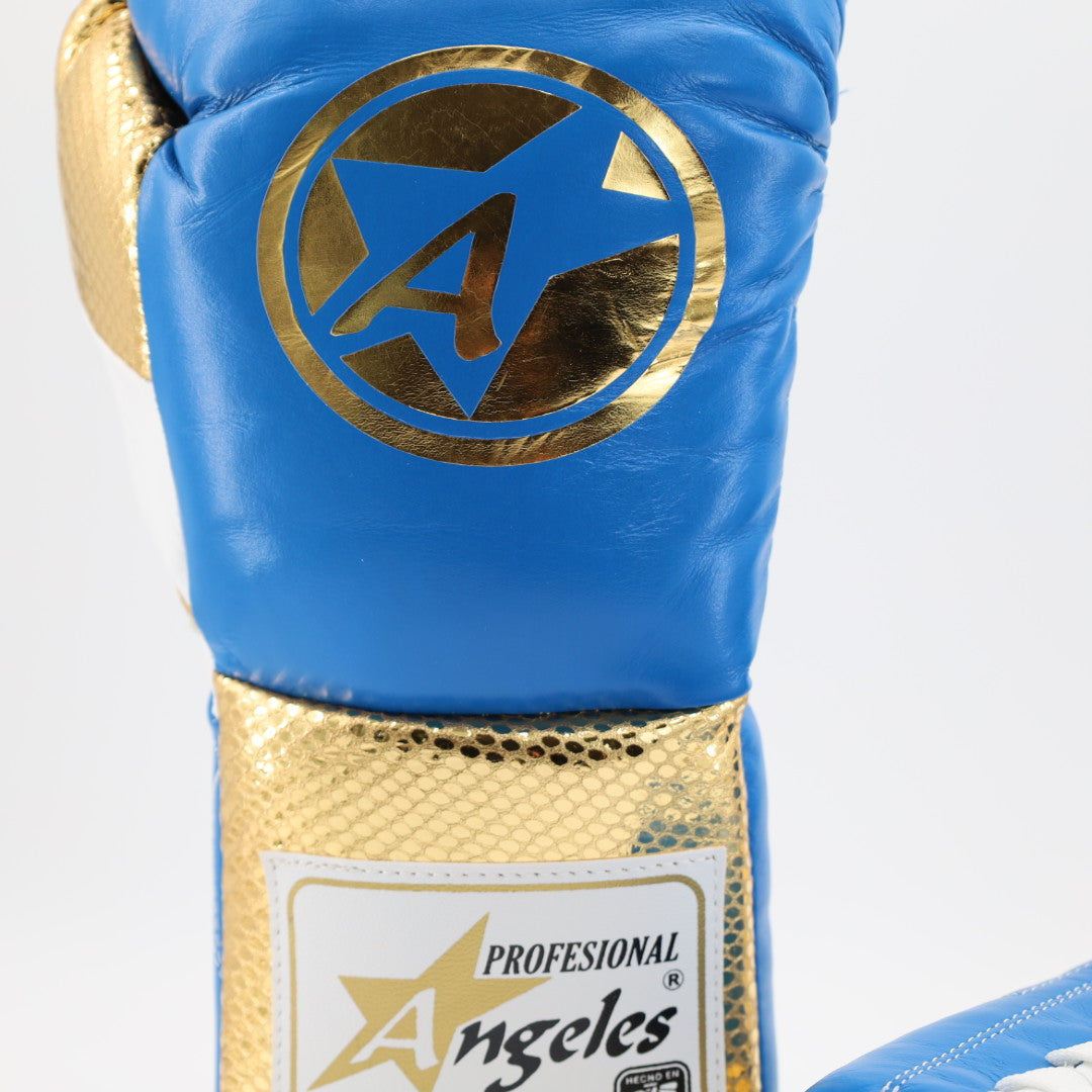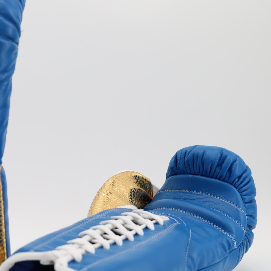 Angeles elite pro lace up training gloves - blue / faux snake / metallic gold