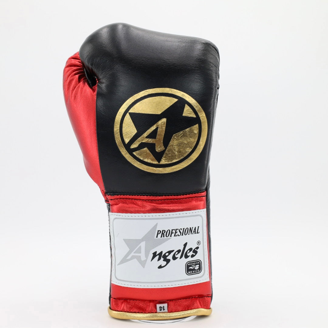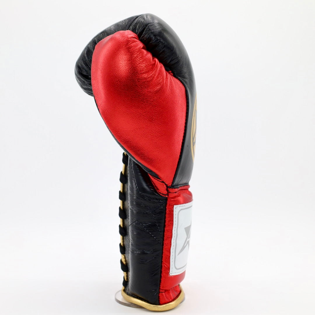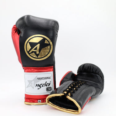 Angeles Lace Up Premium Training Gloves - Black / metallic red / metallic gold