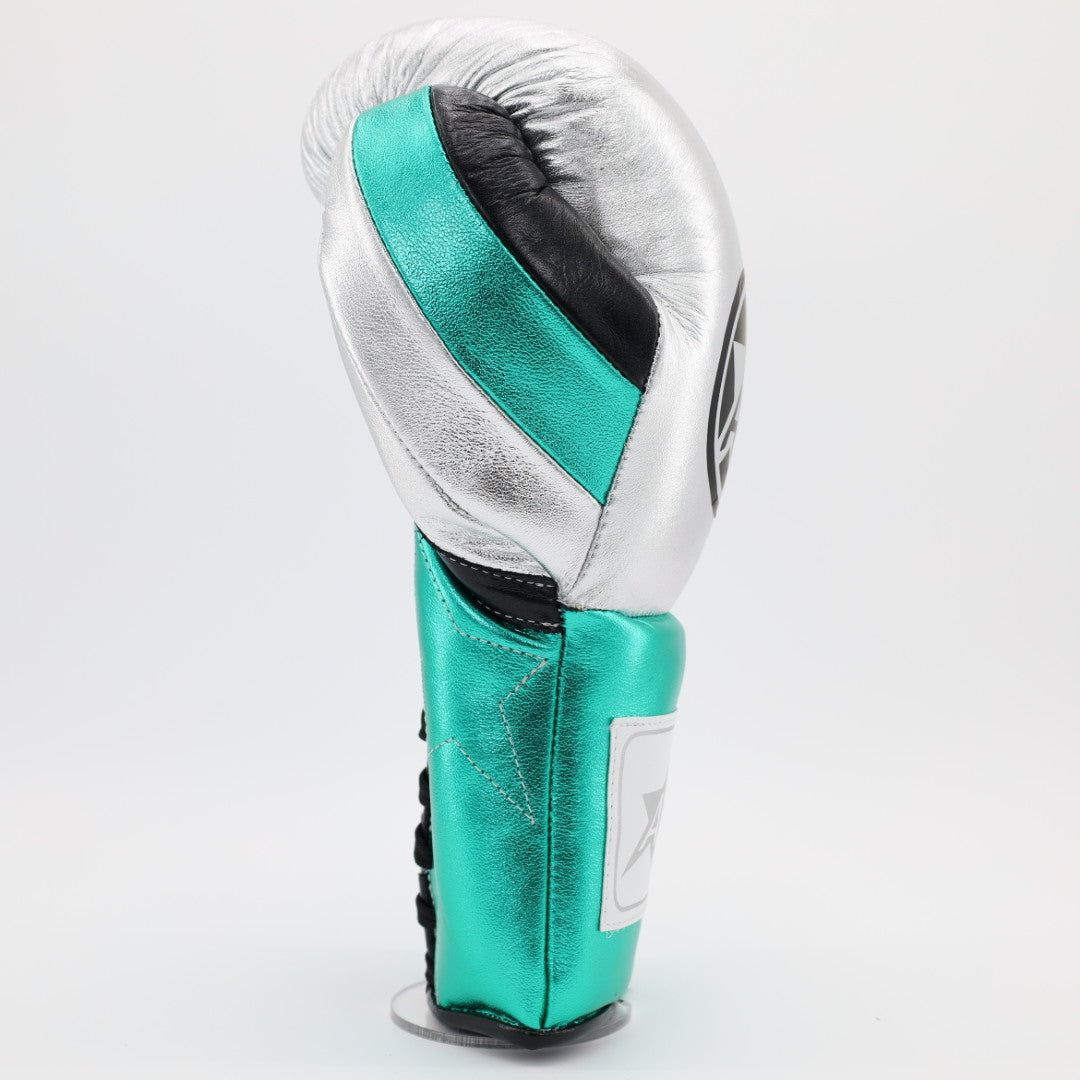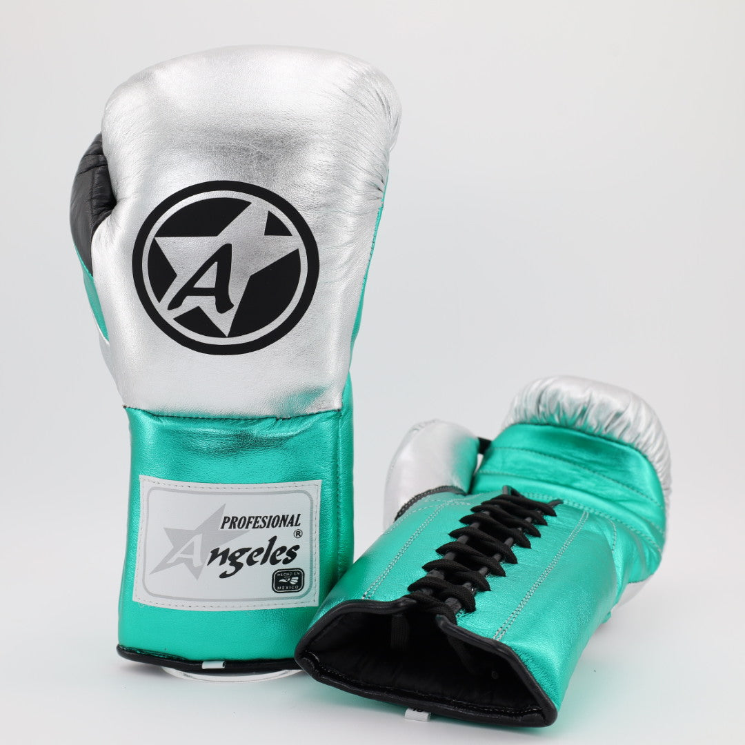 Angeles elite pro lace up training gloves - metallic silver / metallic green / black