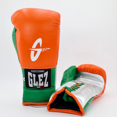 GLEZ Lace Up Training Gloves - Orange / green / metallic silver