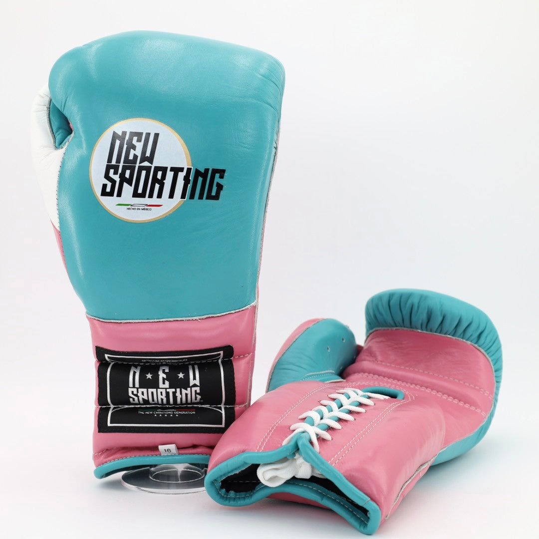 New Sporting 2/B Lace Up Training Gloves - Teal / light pink / white