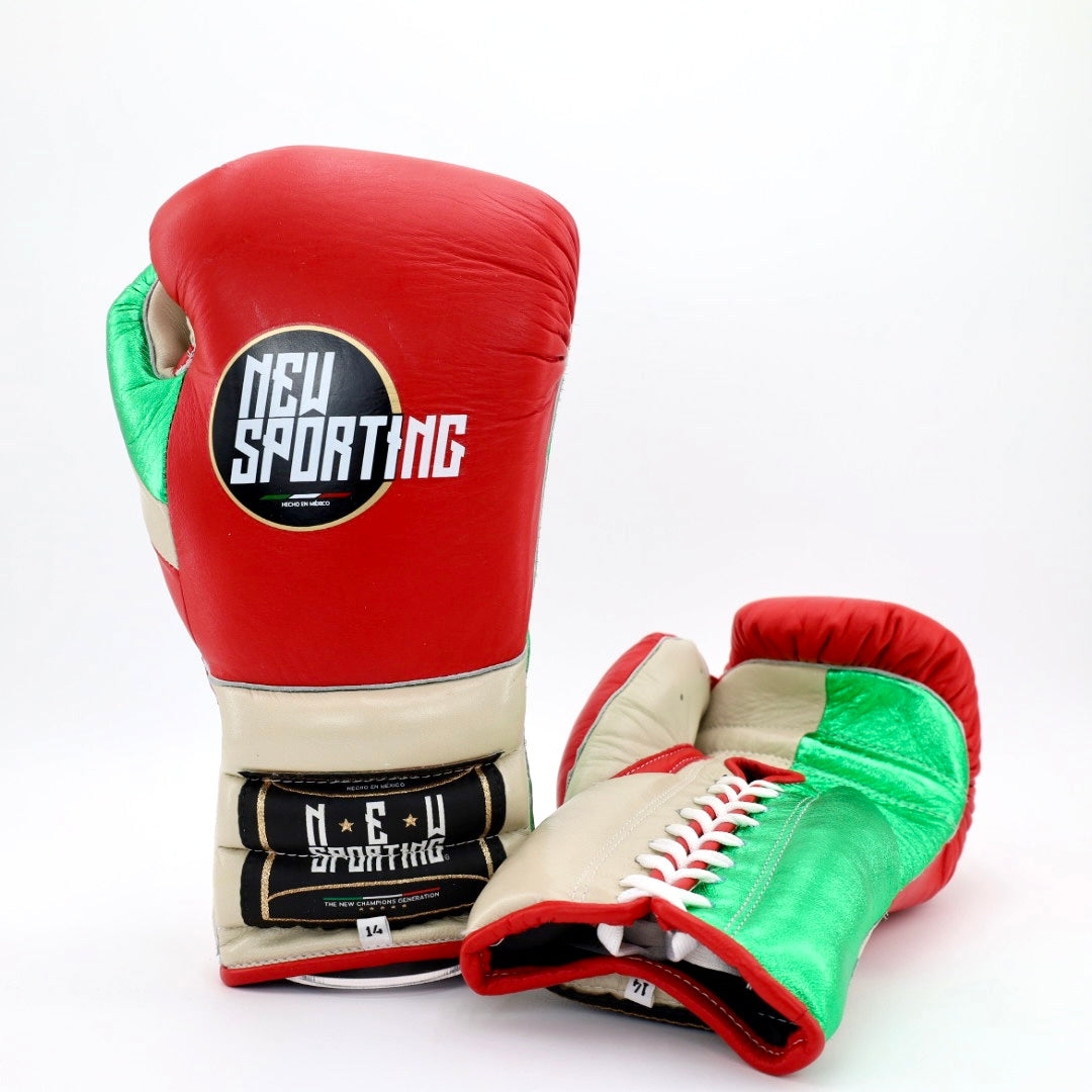 New Sporting 2/B Lace Up Training Gloves - red / taupe / metallic green