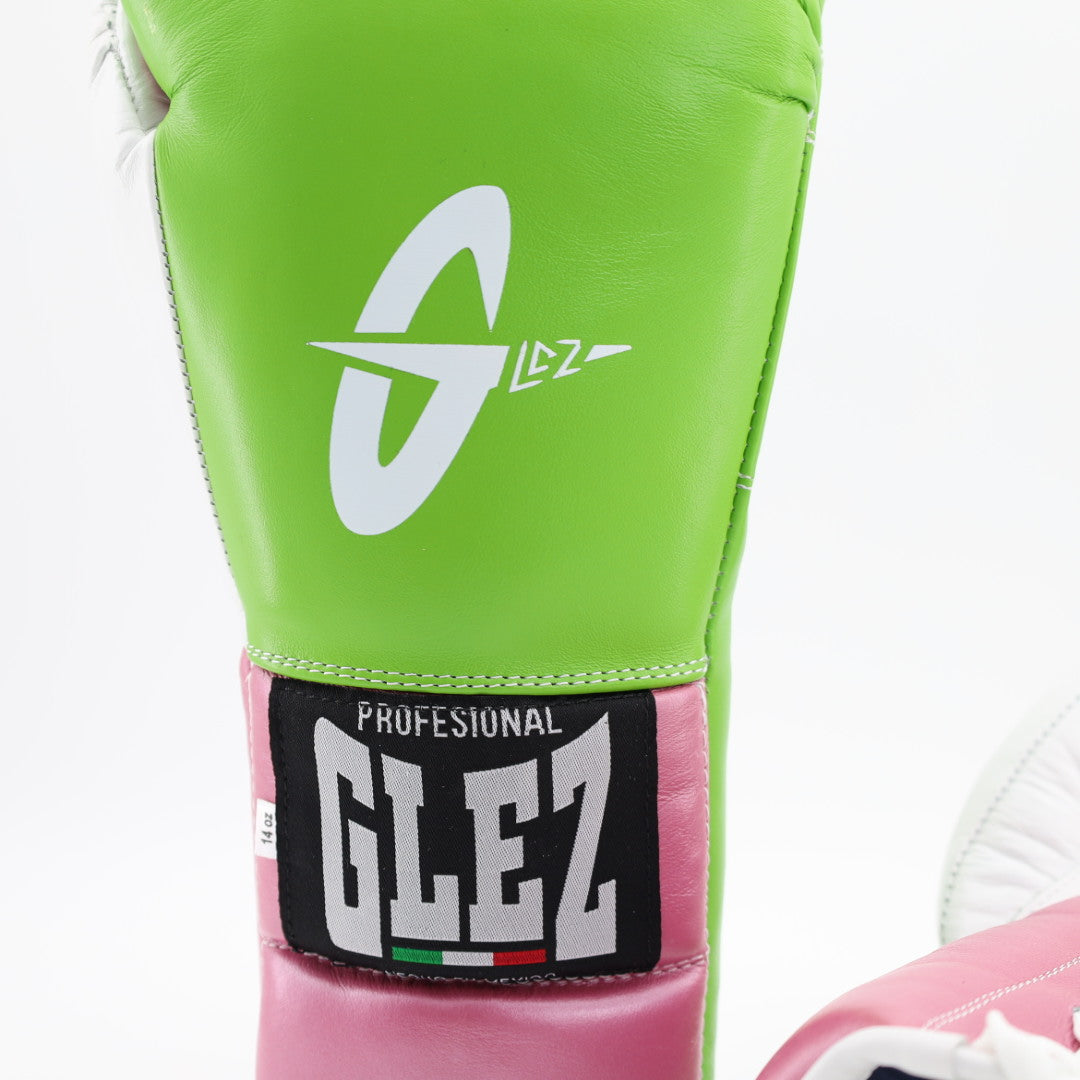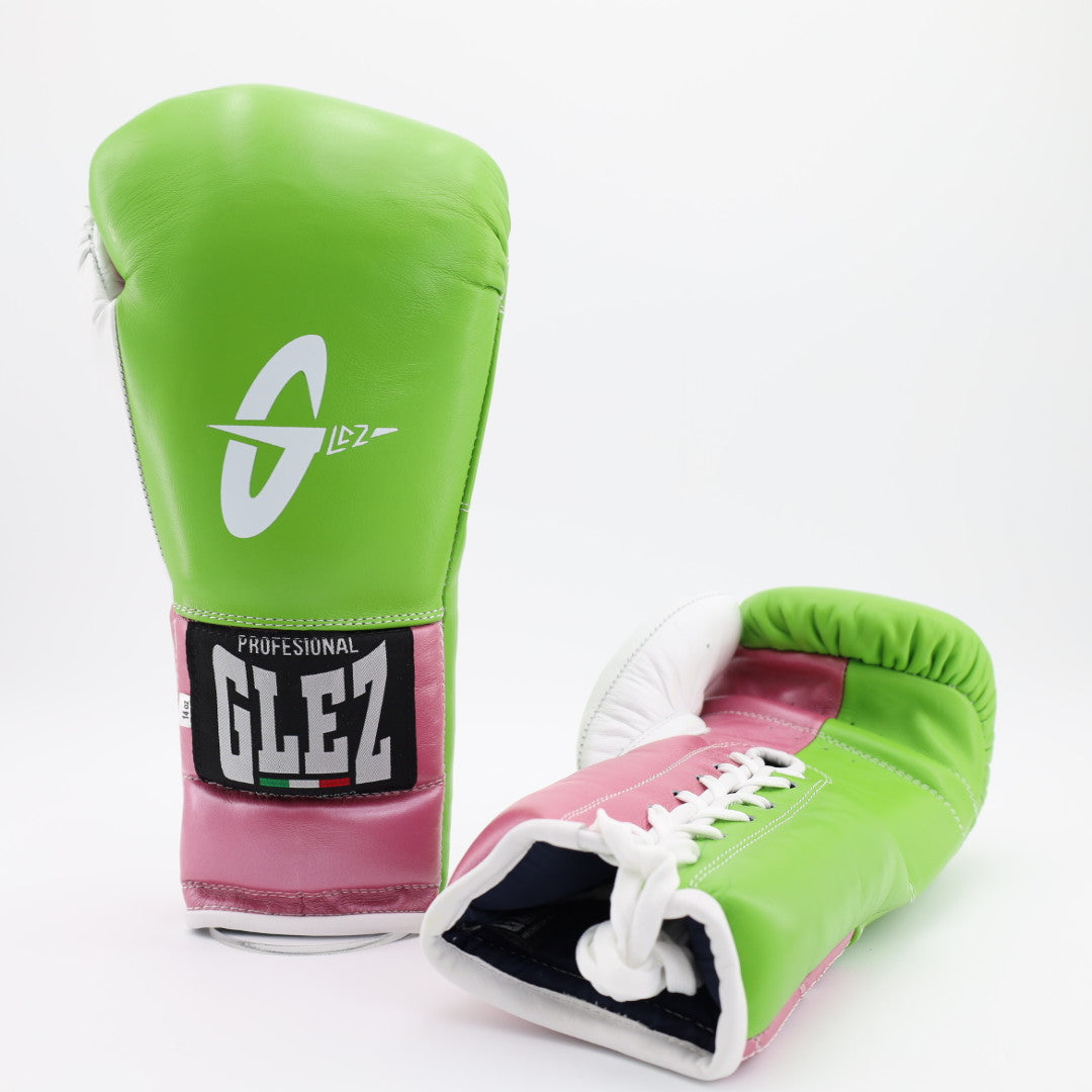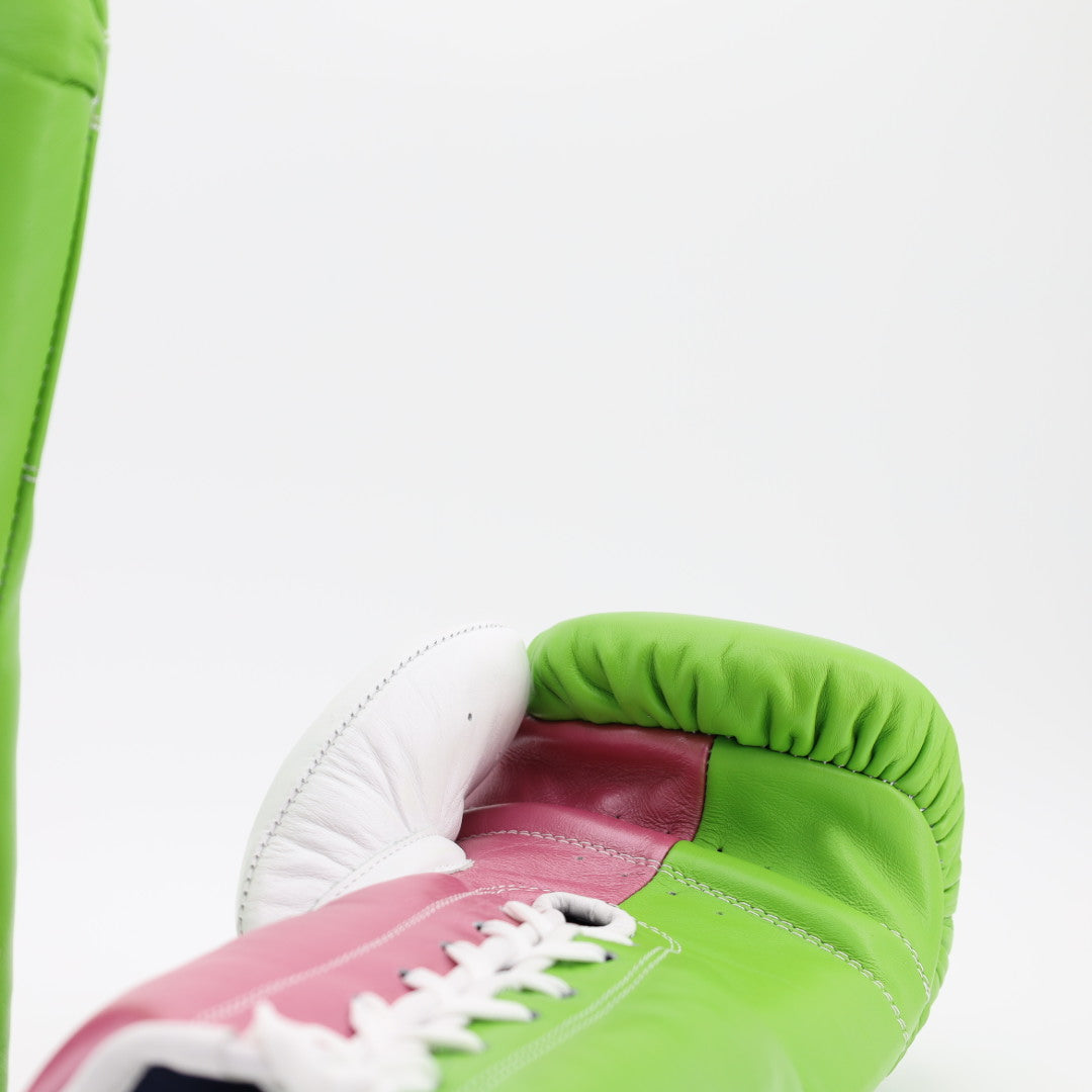 GLEZ Lace Up Training Gloves - lime green / satin pink / white