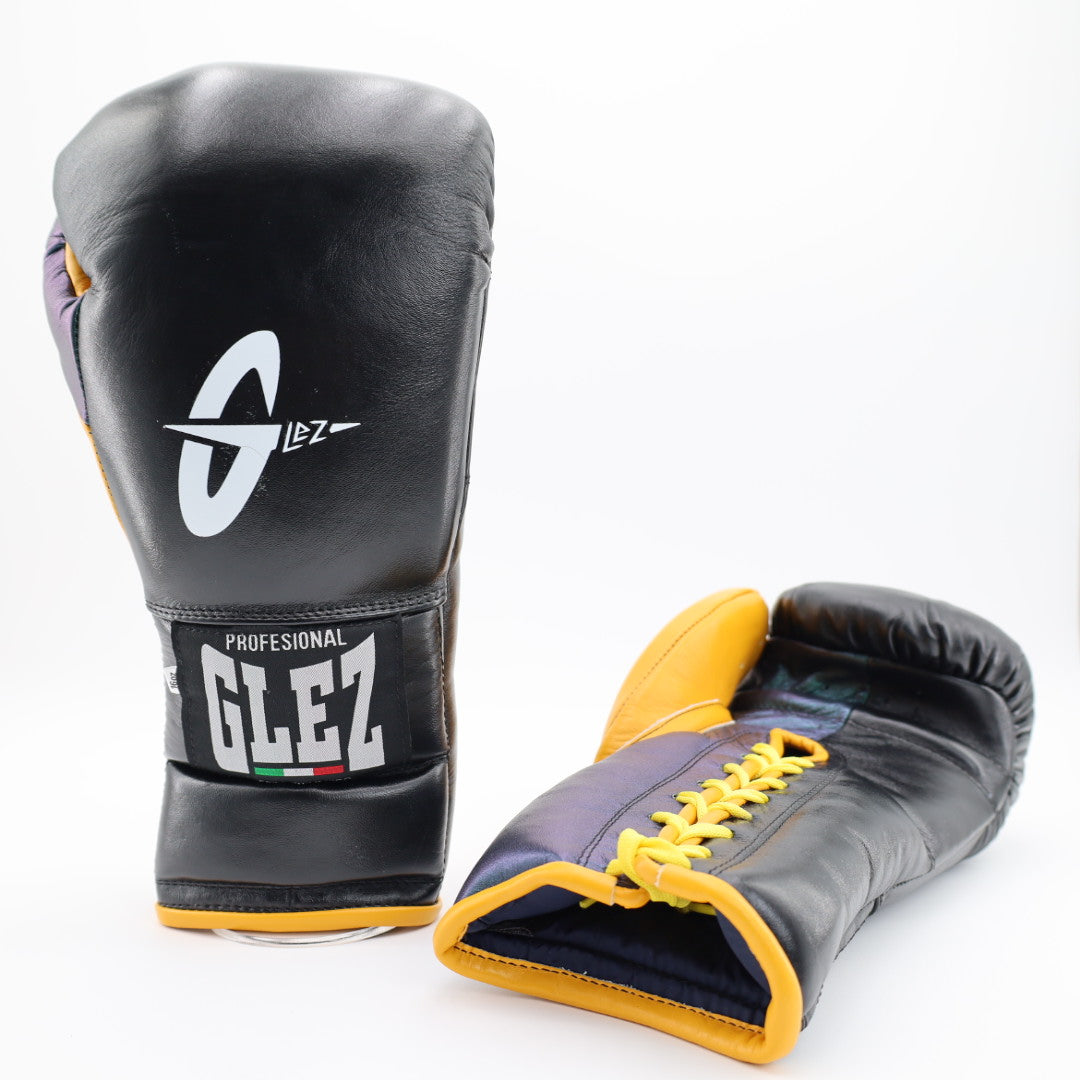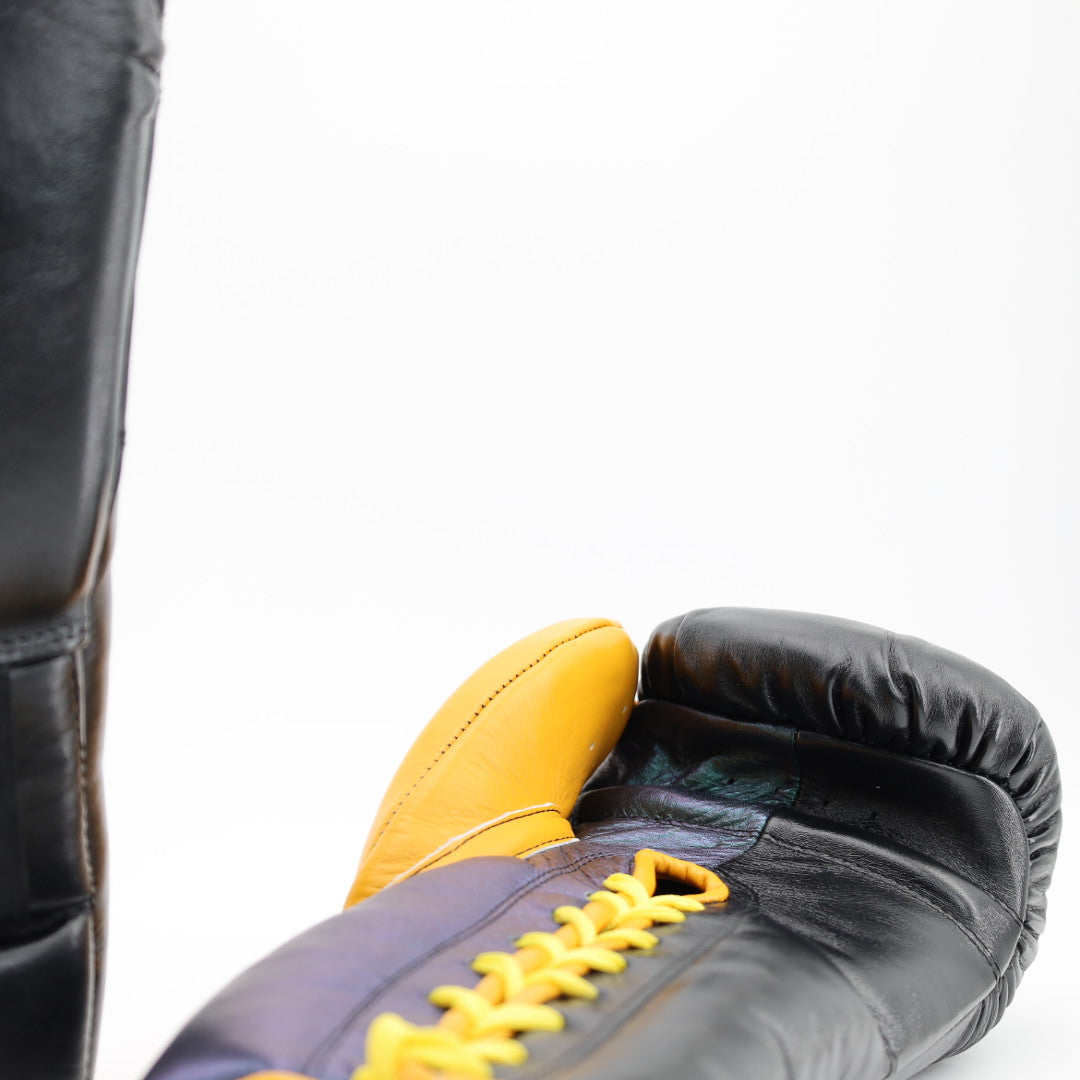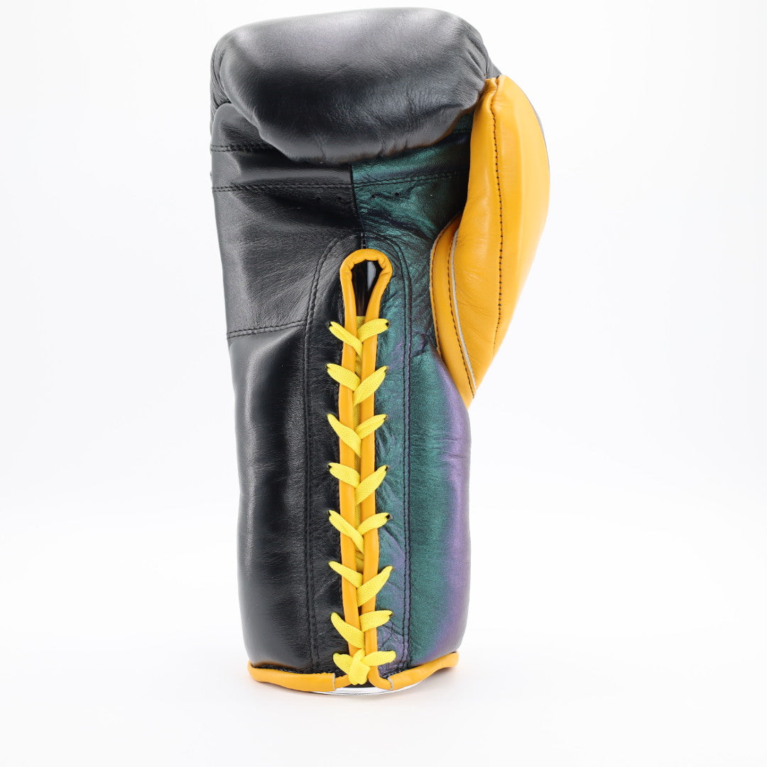 GLEZ Lace Up Training Gloves - Black / metallic iridescent/ yellow