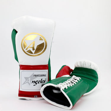 Angeles Lace Up Premium Training Gloves - white / green / red
