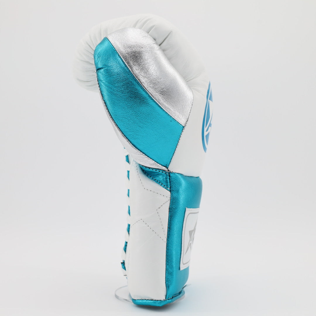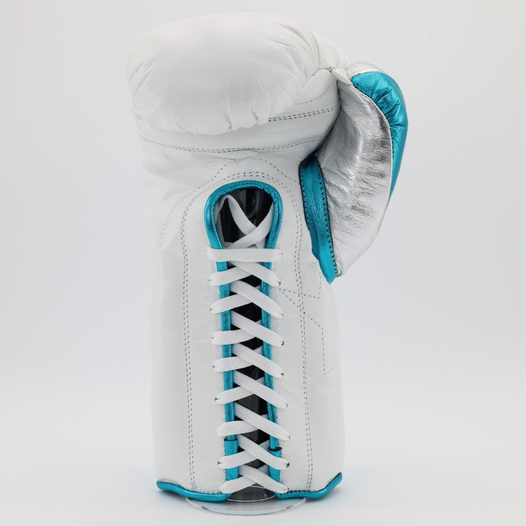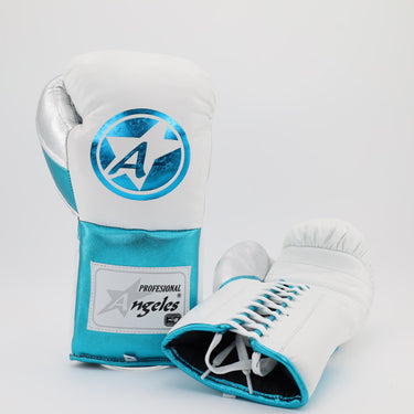 Angeles elite pro lace up training gloves - white / metallic aqua / metallic silver