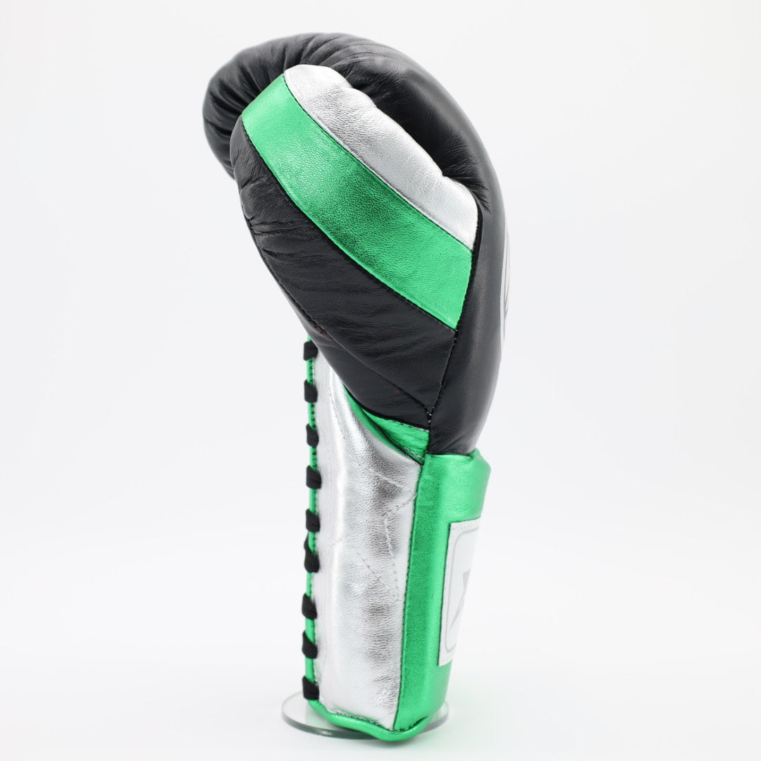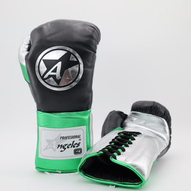 Angeles elite pro lace up training gloves - black / metallic green / metallic silver