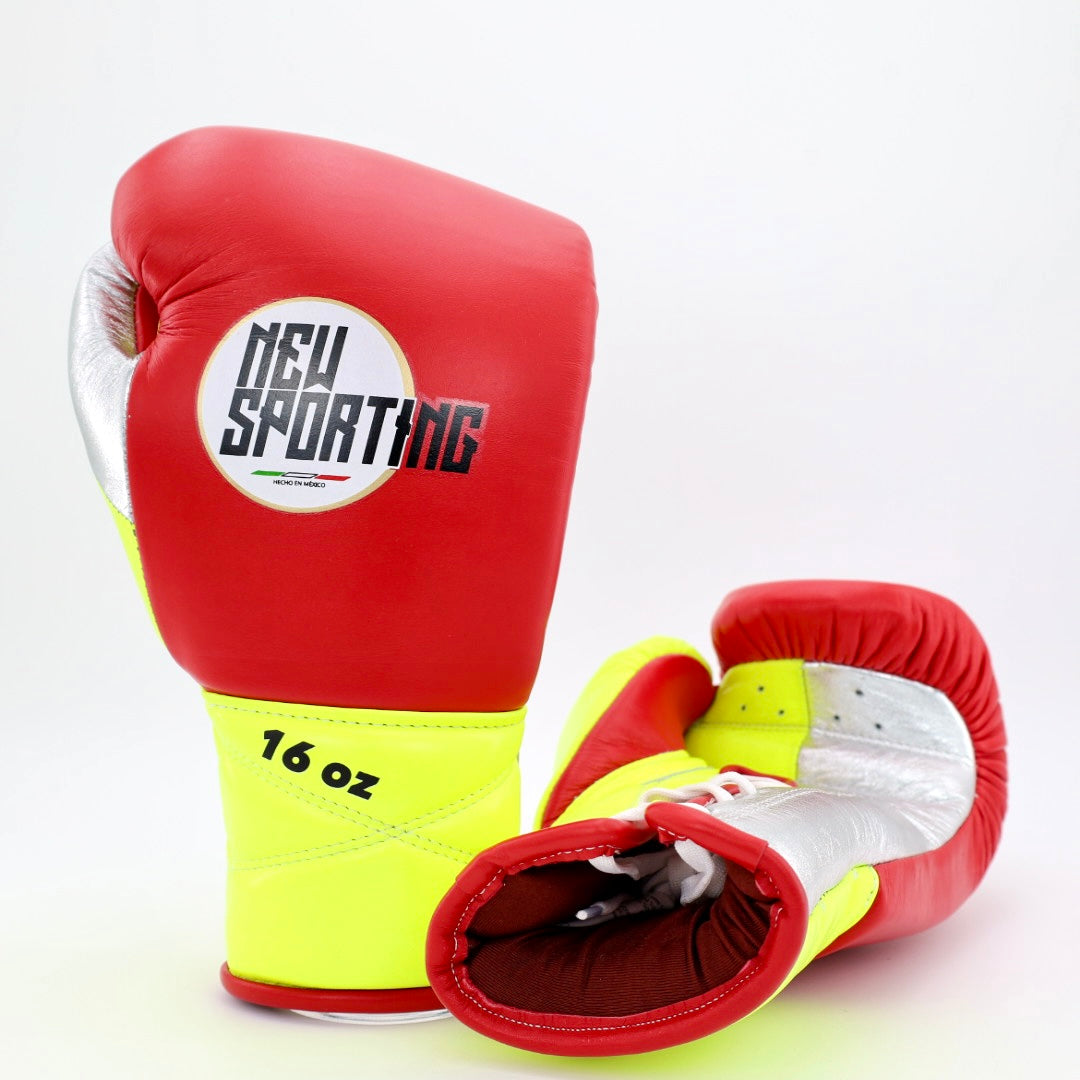 New Sporting HGP Lace Up Training Gloves - Red / neon yellow / metallic silver