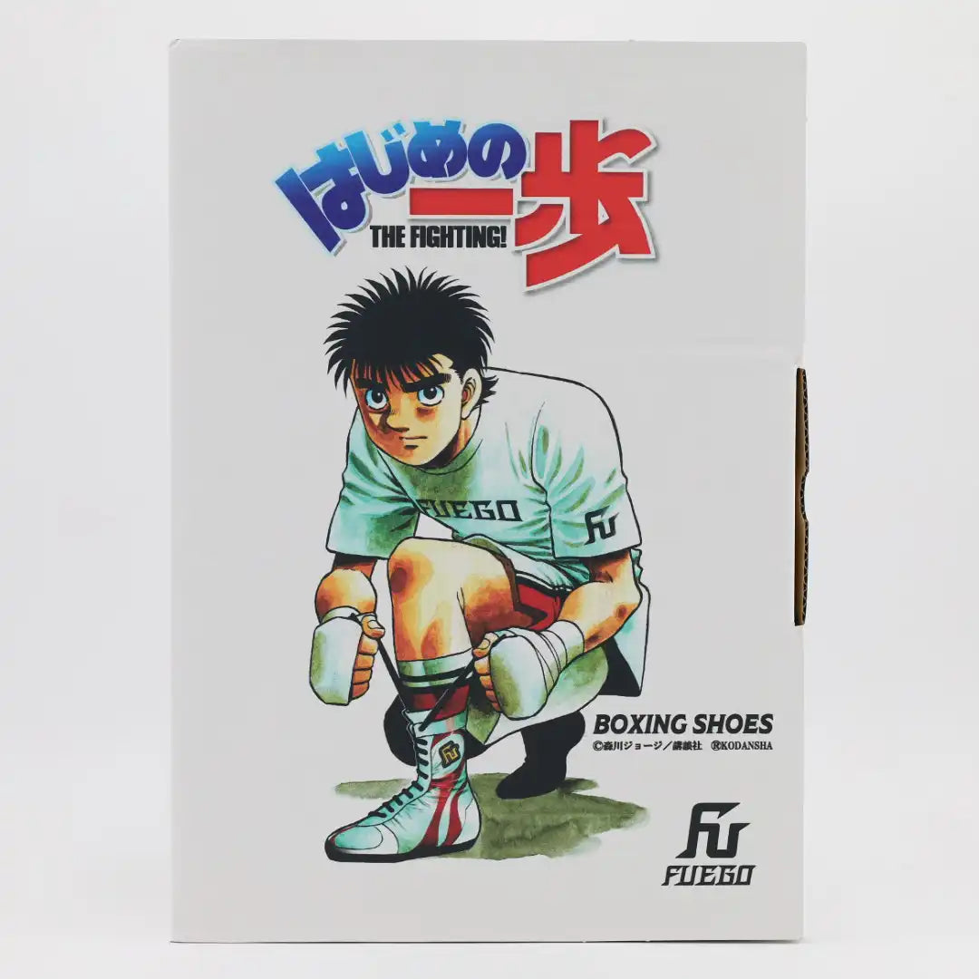 Based on Sendō’s signature black-and-orange color scheme, the design features a bold tiger stripe pattern around the ankle, symbolizing his ferocious image. This powerful pair embodies the strength of his devastating smash and his unyielding fighting spirit. Glossy overlays add intensity and presence in the ring. Finished with the Hajime no Ippo logo on the tongue and delivered in an exclusive collaboration box.