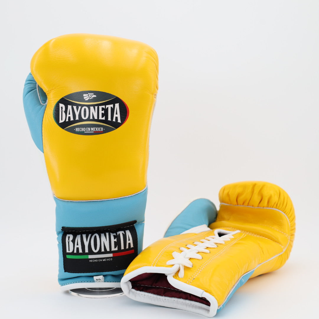 Bayoneta Premium multi layer HH lace up Training Gloves - yellow / ice blue / white