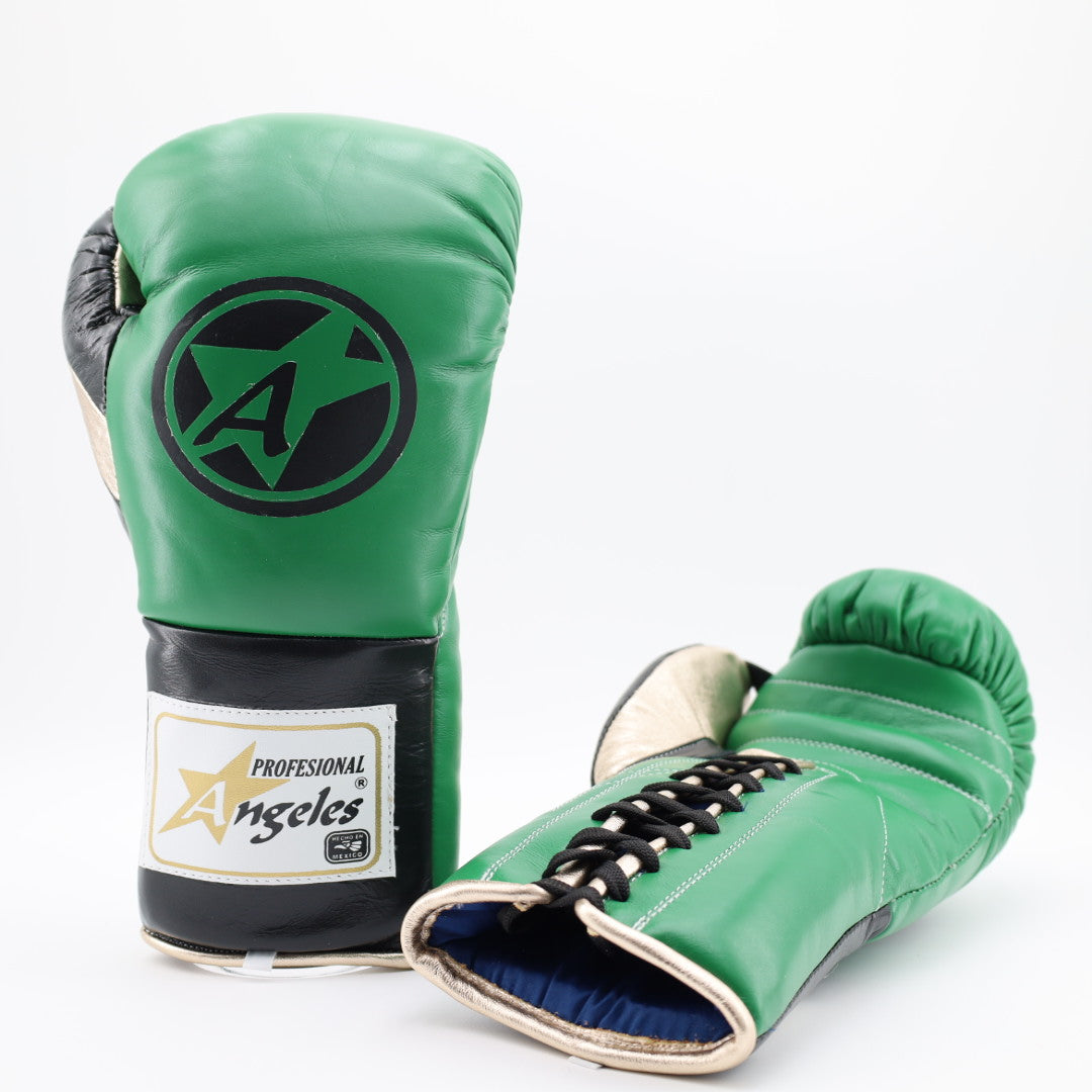Angeles elite pro lace up training gloves - Kelly green / black / metallic gold